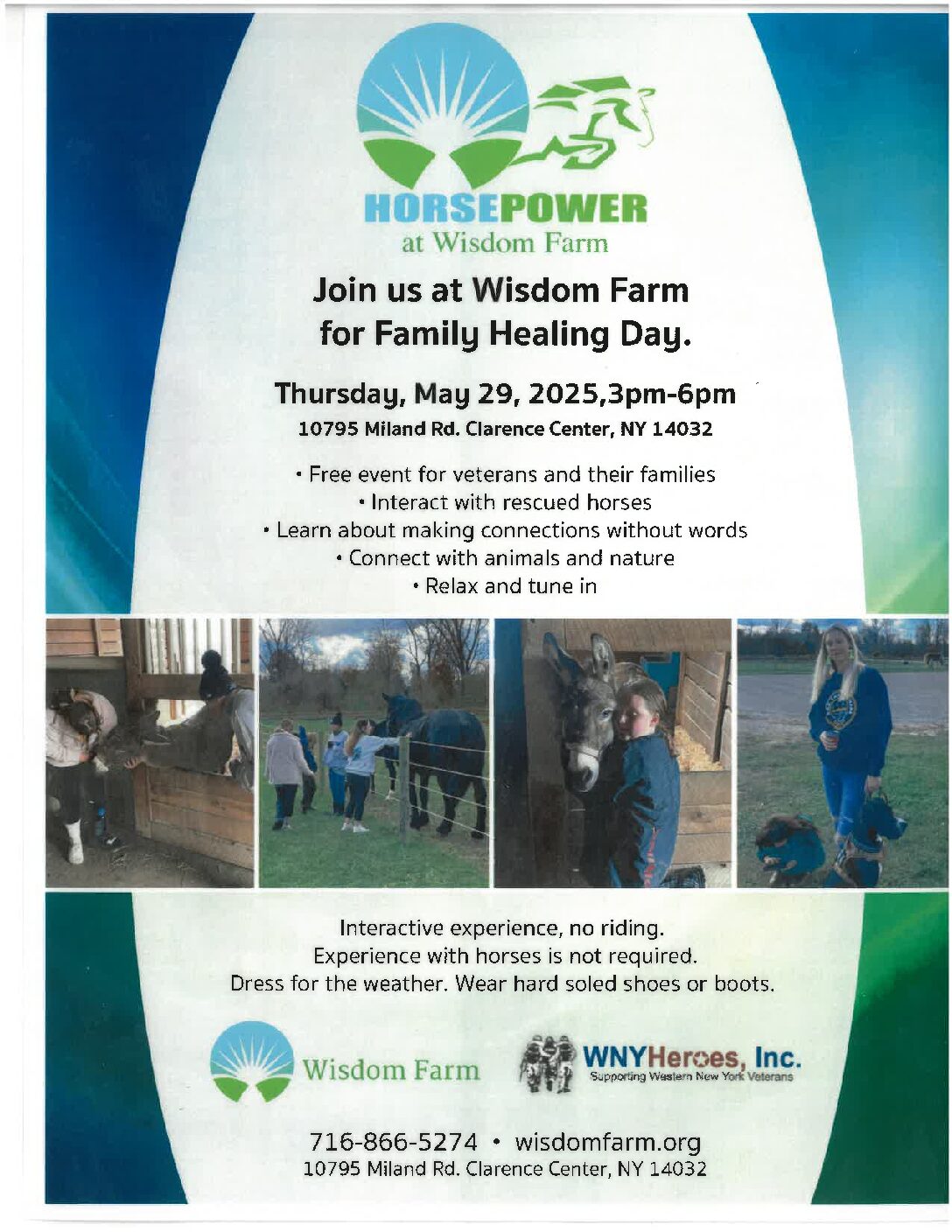 Join us a Wisdom Farm for Family Healing Day. Free event for veterans and their family. Interact with rescued horses, learn about making connections without words. Connect with animals and […]