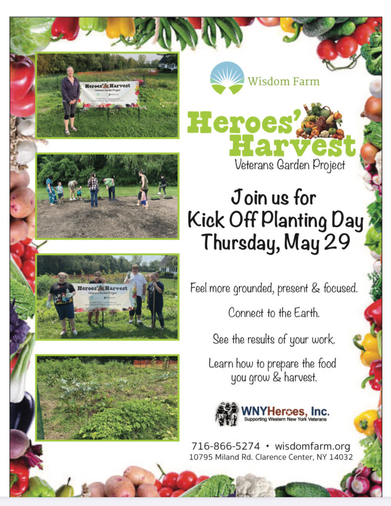 Wisdom Farm 10795 Miland Rd., Clarence CenterVeteran Graden Project Join us for kicking off Planting Day Feel more grounded, present & focused. Connect to the earth. See the results of your work. Learn how to prepare […]