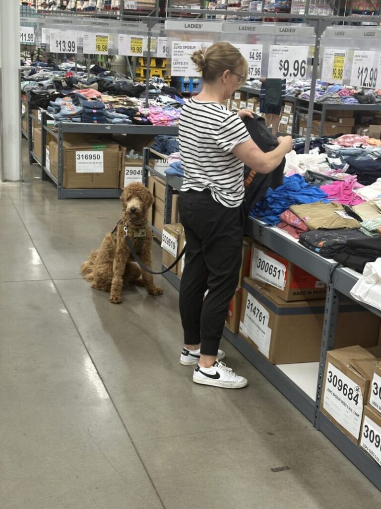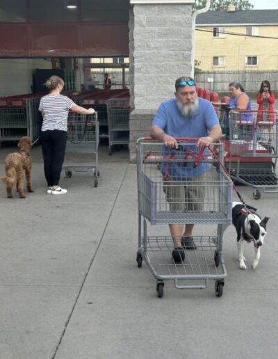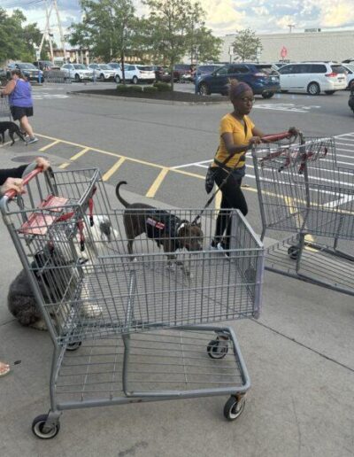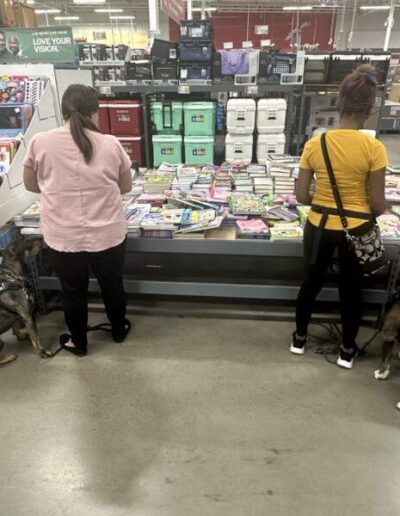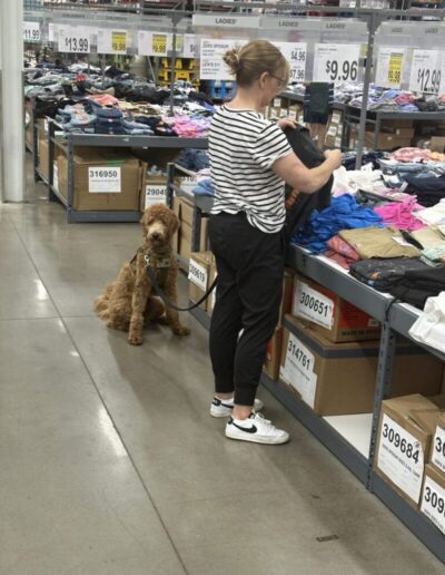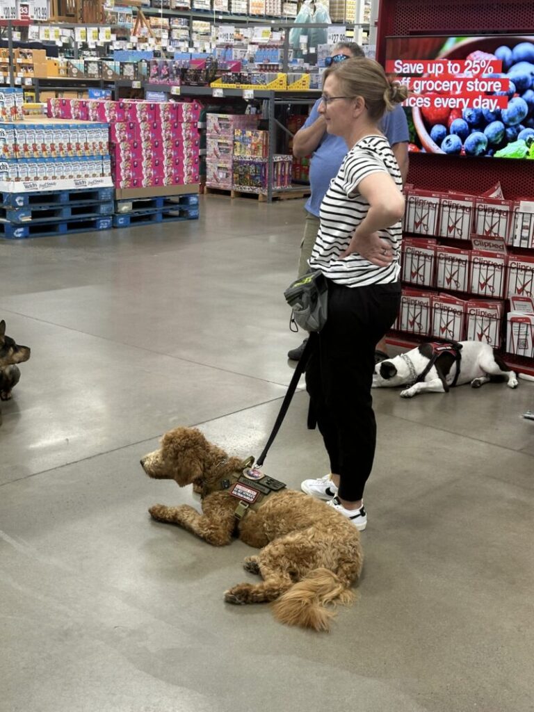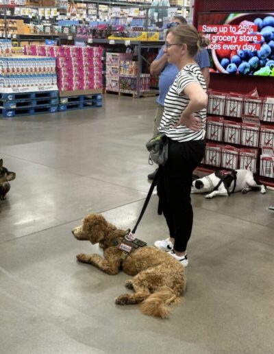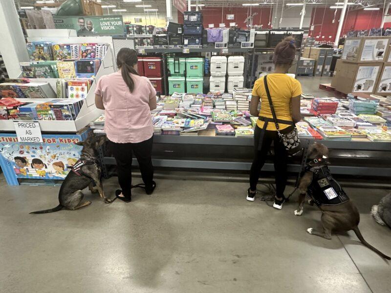 Our service dogs continue their public access training with our friends from BJ’s. Service dogs need as much exposure as possible. When taking them out, many become afraid when close to a shopping cart, so we work with to ease their stress and keep them relaxed. Many distractions for sure when out in public and it’s our job to ensure they do not become distracted from their handler.