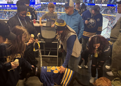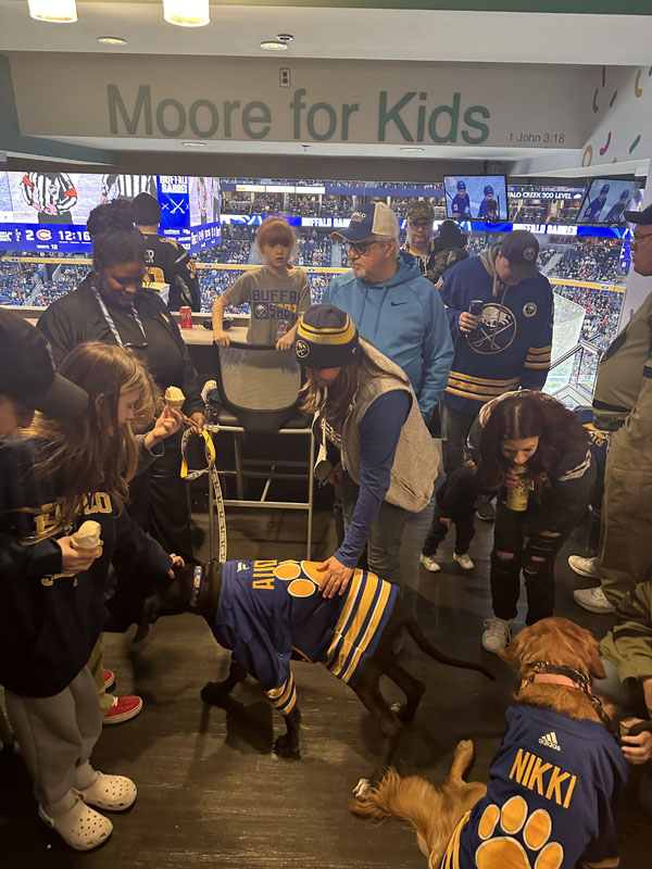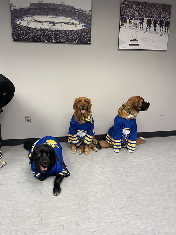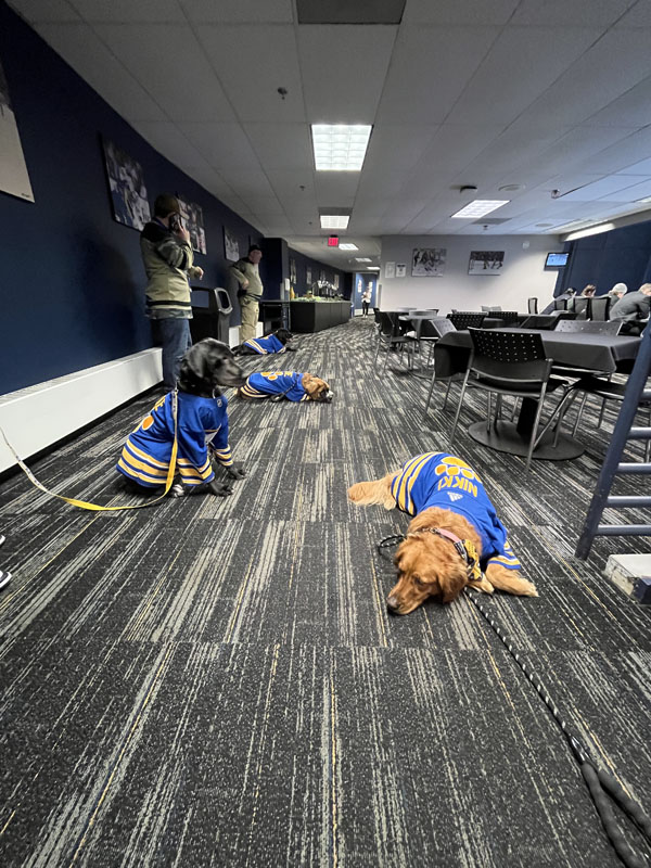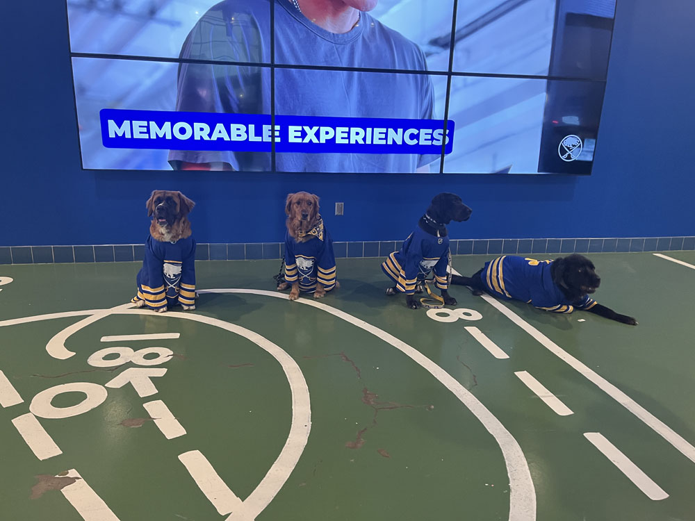 Sabres team dogs from all four seasons have team reunion for Military Appreciation Night.